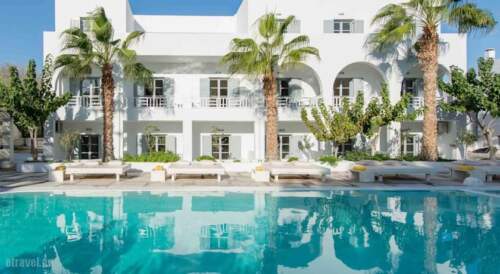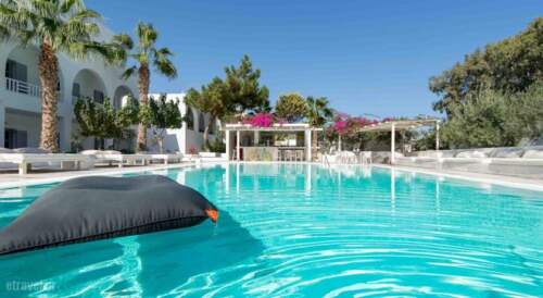 Summer Travel in kamari, Sandorini, Cyclades Islands in Hotel 28