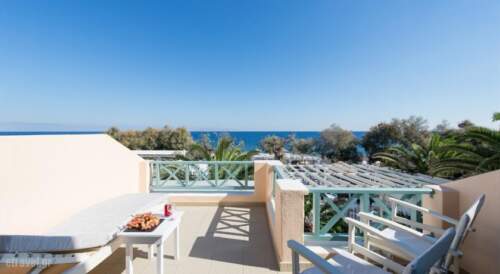 Just 10 meters from Kamari beach, sea Side Beach Hotel features an outdoor pool with hot tub and a beach front tavern. Built according to the local architecture, it offers air-conditioned accommodation with free Wi-Fi. All rooms and studios open to a furnished balcony or shared terrace with side Aegean sea or pool views. Each includes a flat-screen TV with satellite channels and fridge. Some accommodation types are split-level and self-catered. Guests at the Sea Side can start their day with an American breakfast in buffet style. Enjoying sea view, the on-site tavern prepares Greek dishes and fish. A bar and snack bar are also available. Staff can arrange car rental to explore the lively Fira at 5 miles. Guests will find a bus stop at 100 meters from the property. Santorini International airport is at 2.5 miles and Athinios port is 7.5 miles away.