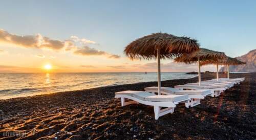 Summer Travel in kamari, Sandorini, Cyclades Islands in Sea Side Beach Hotel
