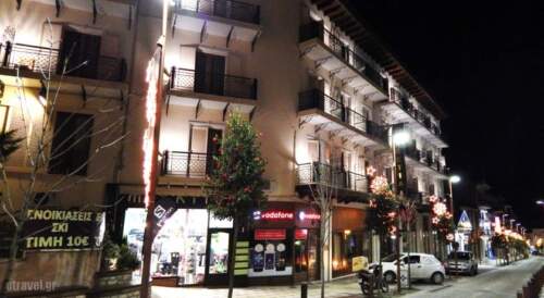 At the centre of beautiful and historical Karpenisi, this family-run hotel offers a good location from which to explore the landscapes and natural beauty of Evrytania. If you plan to hit the slopes, the hotel is just 8.1 miles from the famous Velouchi Ski Centre. You may wish to include visits to Proussos Monastery and the Tavropos River. Walk or hike through the beautiful mountains before returning to the comfortable hotel with lovely views. Have a cup of sweet-smelling coffee and traditional sweets with your meals in the bar / restaurant and unwind for the evening in the warm atmosphere. The large and comfortable lobbies of the hotel offer unique moments of relaxation and 2 stone fireplaces.