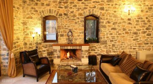 Situated in 1,050 meters of altitude, in the traditional village of Karyes, the stone-built Arhontiko Parnona is surrounded by walnut and chestnut trees. It offers a restaurant, bar and free Wi-Fi. Featuring a balcony overlooking the mountain, the air-conditioned rustic rooms have a flat-screen TV and cable channels. There is also a fridge and a desk. Featuring a bath, the bathrooms also come with a hairdryer and free toiletries. Some units feature a fireplace. At Arhontiko Parnona there is a cozy lobby with a fireplace and antique style decor . Other services like bicycle rentals and luggage storage are offered. Restaurants and bars are 1.2 miles away and the centre of Karyes village is 0.9 miles away. The towns of Gytheio and Nafplion are a 2-hour drive away. Free private parking is offered on site.