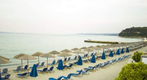Hotel Ammon Zeus enjoys a beachfront location in the popular resort of Kallithea, in Chalkidiki. The hotel has a spa with hot tub, steam bath and sauna, and a pool with summer terrace. Free WiFi is provided in public areas.All the rooms have private balconies with sea or garden views, and are equipped with air conditioning, satellite LED TV, hairdryer and mini fridge or minibar.The hotel restaurant serves breakfast and dinner, in buffet style with traditional Greek and Mediterranean dishes, made from fresh, local produce. The pool and the beach bar prepare cocktails, healthy drinks and snacks.Facilities include a children’s pool and a small fitness centre. Sun beds and parasols, as well as water skis, jet skis and sea bikes are available for rent on the Blue Flag beach. There is an internet corner by the lobby, which can be used upon charge. A kids’ club is available free of charge, while 1 free lesson of scuba diving is offered. Free yoga and aqua aerobics programmes are provided. Several massage treatments can be arranged upon charge.The hotel is just a 5-minute walk from vivid Kalithea centre, with shops and bars. Thessaloniki International Airport is 49.7 miles away. Free public parking is provided outside the hotel, while private, on-site parking is possible upon charge.