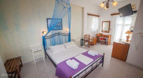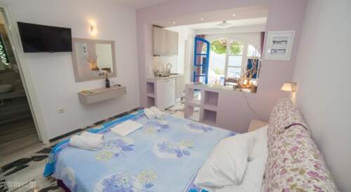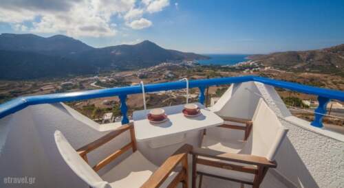 Surrounded by a garden, the Cycladic-style Castelopetra is just 1.2 miles from Katapola port and features a bar and sun terrace. It offers air-conditioned studios with free Wi-Fi and panoramic views to the Aegean sea. A kitchenette with cooking facilities and fridge is included in all units at the Castelopetra. Each has a TV and private bathroom with shower and hairdryer. Free transfer from Katapola port is provided. The nearest beach is 1.2 miles away. The scenic town of Amorgos is within 2.5 miles and a bus stops right outside the property. Staff can arrange car rental and free private parking is possible on site.