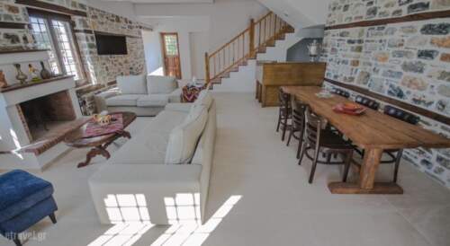 Located in the village of Pinakates, Riga’s Pinakoti Lodge offers spacious, split-level accommodation with a large, furnished terrace. The villa features a traditional, yet elegant decor, with wooden floors and stone details. It includes 5 separate bedrooms, 7 bathrooms, a fully equipped kitchen, living room and dining area. You can enjoy sea and mountain view from the rooms are village of Vyzitsa is 2.5 miles away and Milies is 3.1 miles away. Within 15 km, you can also visit the beach of Afyssos. Volos town can be reached at 15.5 miles. Free private, on-site parking is possible.