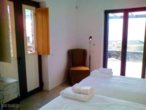 On the Cycladic island of Kea (Tzia) with a panoramic view from West to North, 4 km from the port you can find the 1 hectare Agrikea with its old terraces having been replanted with oak, olive, pomegranate, almond, figs and vegetable and herb gardens. In our new guesthouse we wish you to have the feeling of being guests in a farmhouse (Agrikia) while enjoying all the facilities of a boutique hotel. We want our guests to enjoy the tranquility and natural environment at all times of the year. Within a stone’s throw from Athens Agrikea is addressed to the true nature lover who wishes to have a different holiday experience. The philosophy of Agrikea is beyond the limits of the classical beach holiday, without excluding it. Agrikea is suited to guests who wish to experience the unique environment of the island, to enjoy the culture of the place, while relaxing on the farm, a special refuge. From a central vantage point in the island the guests have access to the roads leading to all the beaches on the island while they are in close proximity to the hill main village and harbor night life.