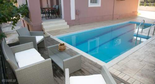 Set amongst olive trees in the village of Chavdata in Kefalonia, Ionian Balcony features a swimming pool and a garden. It offers self-catered accommodation with a balcony overlooking the Ionian sea and the mountains. A kitchenette with fridge, oven and toaster is included in all the air-conditioned units at the Ionian Balcony guest house. Each comes with a dining area and a TV. A playground is available for younger guests ree Wi-Fi access is provided in public areas. A mini football field can be also found on site. The centre of Chavdata with with taverns, cafe and shops is within a 10-minutes walk. The famous Gero Gombo Lighthouse beach is 1.9 miles away. The town of Lixouri is at 3.1 miles.