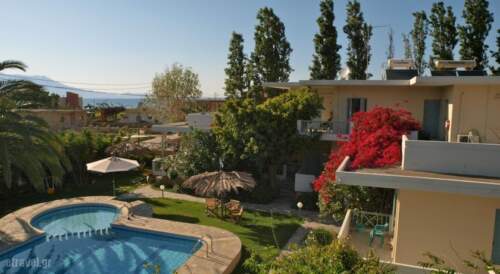 the family-run Cormoranos Apartments are set less than 50 yards from the long stretch of sandy beach of Nopigia. They offer a swimming pool and a children’s pool.The soundproofed apartments at Cormoranos are surrounded by lush green lawns with exotic palms and colourful splashes of bougainvillaea. Each air-conditioned apartment can accommodate 2, 3 or 4 adults and has a living area and a kitchenette with dining table.Upon request, a traditional breakfast, prepared with Cretan organic products, is served in the comfort of your room.The archaeological museum of Kissamos, as well as the pristine beaches of Balos and Falassarna are located within 15 kilometres from the Cormoranos Apartments. Transfers to and from the airport are available upon request at an extra charge. Free private parking is possible on site.