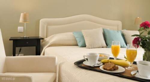 Athena Hotel is a luxurious new hotel with stunning views of the sunset and the green of the surrounding hills from its rooms, lounge and dining room. It is located in Mylopotamos, in Kythira.The spacious rooms are furnished with exclusive furniture, have a private balcony, comfortable beds, air conditioning, satellite TV, hairdryer, minibar and free wireless internet.Guests can enjoy breakfast buffet at the dining room, or ask to be served on their private balcony. Snacks, drinks, coffee, sweets, ice cream, and delicious local dishes are available later in the day.The hotel is conveniently located only 5 kilometres from the beach. The airport is situated 14 kilometres away.