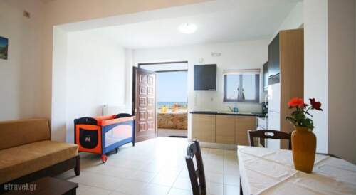 Panthea Suites is located 12.4 miles west of the city of Chania, at the coastal village of Kolymvari. It offers spacious apartments with views over the on-site swimming pool and the sea.The Hotel consists of 6 independent and full equipped apartments. Each apartment has 2 bedrooms, a living room, a bathroom and a kitchen in open plan. All apartments have great view to the open blue sea and the pool.Panthea Suites offers a large swimming pool especially designed for children, and a playground with a slide and swings.Kolymvari is located only 15 minutes drive from the city of Chania, through the new national road Chania-Kissamos. It is a beautiful coastal village with a big, crystal clear beach as well as a small picturesque port.