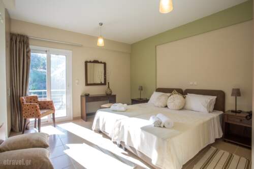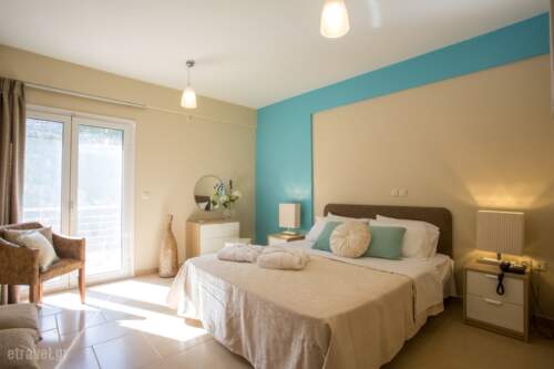 Baywatch new 3-star hotel apartments is located in Chrani Messinia-Peloponnese (Greece), very close (three minutes by car) to the beach of Chelonaria, which is a unique beauty and endless sandy turquoise beach by the sea. Baywatch expects to offer you every comfort and hospitality in its newly built complex, consisting of four two-floors buildings and sixteen double autonomous and independent apartments, a large pool, a children’s pooland jacuzzi in order to enjoy special and unforgettable moments of relaxation, rest, wellness and luxury gazing-like features true to its name (Bay watch)- the unsurpassed natural beauty overlooking the Messinian Gulf and Taygetos towering majestic and complements the unique scenery of nature. Baywatch is in perfect harmony with the natural scenery. It grows to levels, in which the prevailing architectural element of stone, colors and elements of the natural environment give the ultimate aesthetic consistency with it. This leads guests to enjoy a carefree stay inseparable from the unique view, the aesthetics of space and high quality service which in total satisfy the most demanding visitor. At Baywatch wishes come true.
