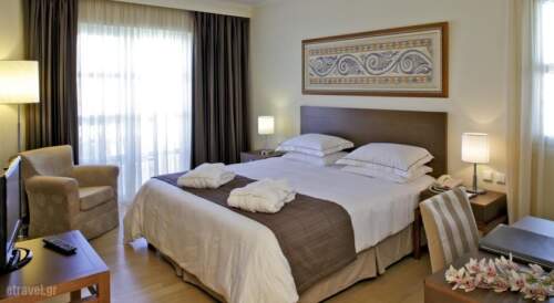 Set amidst a landscape garden decorated with artworks, Neptune Hotel features 5 swimming pools and 8 bars, within 3.1 miles from Mastichari village in Kos. The beach front hotel complex offers a variety of sports and leisure activities such as tennis courts, badminton and a spa centre. The air-conditioned rooms and apartments of Neptune open to a balcony or a patio overlooking the Aegean sea or the garden. Elegantly decorated with well-chosen furnishings and soft colours, each unit has an LCD satellite TV and a fridge. Coffee-and-tea making facilities, bathrobes and slippers are provided.Greek breakfast is served daily at the dining area. The 4 on-site restaurants offer Greek and International flavours accompanied by a selection of fine wine. Cocktails, light snacks and fresh juices can also be enjoyed at any of the hotel’s bars. Guests can relax at the hotel’s private beach, while younger guests can enjoy themselves at the children’s pool or at the games room. Massage treatments, sailing and surfing equipment and mountain bikes are provided. A beauty shop and a doctor office are also featured.Neptune Hotel is located 11.2 miles from Kos town and port and 5 miles from Hippocrates International airport. Free private parking is possible on site and free Wi-Fi is available in hotel’s lobby.