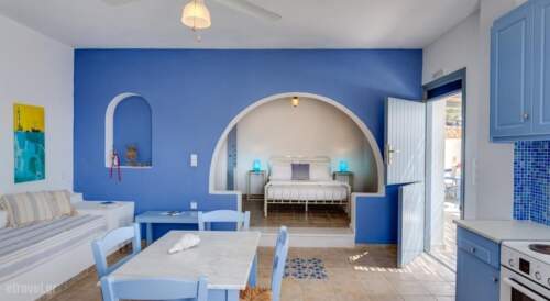 Cyclades Islands. Whats your idea of the perfect beach? Green-blue water and white sand? Beach bars and water sports? Framed by rocks for snorkelling and scuba diving?A secret Aegean cove accessible only on foot or by boat? No matter what your ideal is, youll find plenty of choices in the Cyclades. Known for the iconic blues and whites of their villages and their stunning beaches, the Cycladic islands equally deserve worldwide renown for what their crystalline waters and cove studded shoreline offer to sea lovers. Althea Studios specializes in a local treat with an aroma of the Aegean. Located at Stavros, Donoussa, 84300, Greece, Althea Studios will make you believe that it has come out of the foam of waves and looks like a white painting on a blue font. Althea Studios is ideal for a relaxed and serene holiday. Because of Althea Studios location visitors can easily explore impressively fertile valleys, lush green gorges, stunning seascapes and traditional villages perched high on mountain tops, where the inhabitants still wear their traditional dress and live off the fruits of the land! Althea Studios is the place where Greek tradition and hospitality come to a harmonious marriage.