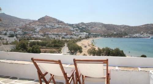 Petra Holiday village is a complex of 17 small villas amphitheatrically built on a hillside next to Ormos beach, with breathtaking views to the sea, Agia Eirini church and the Chora of Ios. It offers studios and apartments with private verandas and individual parking places. The simple traditional Cycladic decoration and the spacious rooms offer you the best opportunity to relax and feel at home. Each is functional with its own kitchenette. Air conditioning, TV and safe are standard features. Petra cafebar is located right on the beach and there you can enjoy you are breakfast, a refreshing cocktail, a small snack or taste a traditional Greekmeal. Summer highlights are the BBQ nights and special events under the stars and the reflecting lights of the port and Chora on Ios Bay.