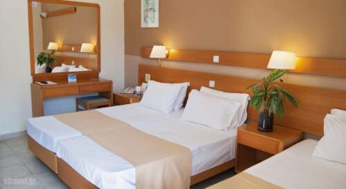 Agla Hotel enjoys a quiet location 50 yards from the beach and just a 5-minute walk from Rhodes town centre. It offers a swimming pool with sun beds and umbrellas and air-conditioned rooms with balcony.Agla rooms are spacious and offer views to the pool or the Aegean Sea. They come with a satellite TV, a fridge and a hairdryer. A kettle can be provided on request.Guests can dine in the main restaurant or in the poolside tavern that offers Greek and international dishes made with products from the hotel’s gardens. The pool bar has a shaded seating area and serves drinks and coffee.Within 2 km, guests can reach the Temple of Apollo, the Medieval town and Rhodes casino. Free public parking is available nearby.