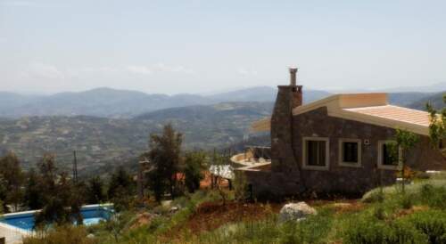 These cottages, situated the eastern slopes of mountain Psiloritis at a height of 800 meters, are located 25 kilometres west of Heraklion City and only 4 kilometres from the historic village of Kroussonas. Aetovigla Guesthouse disposes 11 detached and fully furnished cottages built according to the local architecture and with respect to the natural surroundings. All units are complete with living room, dining room, kitchen and bathroom. Each unit has central heating, fireplace and big verandas with unobstructed views. Aetovigla Guesthouse has an outdoor swimming pool, a cafe and a traditional tavern where quests can taste local specialities prepared with natural Cretan products. The area offers great activity opportunities such as trekking along a path parallel to the gorge of Agia Irini, or visiting the Minoan city of Zominthos in Psiloritis and the historic village of Anogia 10 kilometres from the hotel. Kroussonas is built on the eastern slopes of Psiloritis , the highest mountain in Crete, at 1,510 feet above sea-level.