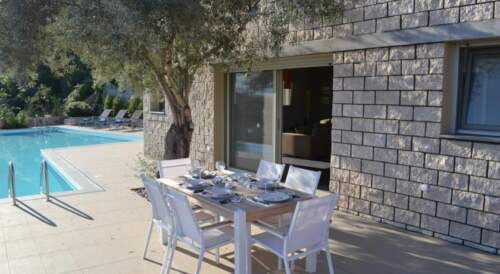 Set amidst lush greenery, in Agios Ioannis of Lefkada, Arenaria Leukadia offers split-level villas with private outdoor pools and furnished sun terraces with views over the Ionian Sea. The long, sandy beach of Agios Ioannis lies within a 3-minute walk.Fitted with parquet and tiled floor, well-chosen furnishings and soft colours, the elegantly decorated villas consist of 3 separate bedrooms with en-suite bathrooms, a living room with fireplace and a modern, fully equipped kitchen with dining area. Facilities include a washing machine, a dishwasher and a flat-screen TV with CD/DVD player.Guests can relax at the sun loungers by the pool and enjoy the unobstructed sea views. A portable, electric BBQ is also available for al fresco dining at the spacious, shaded terrace.Arenaria Leukadia Villas is located 2.5 miles from Lefkada Town and 5.6 miles from the scenic Agios Nikitas Village. The famous Porto Katsiki Beach is at a distance of 23.6 miles. Aktion Airport is 17.4 miles away.