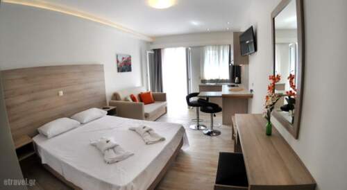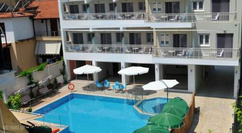 Located 450 yards from the beach, Aggelos Apartments consists of 2 buildings and offers self-catering apartments with a balcony overlooking Lefkada’s landscape and Nydri village. The hotel features a swimming pool and free Wi-Fi.Each air-conditioned unit at Apartments Aggelos has iron beds and bright colours. The kitchenette is equipped with a fridge and cooking hobs. All apartments offer a TV.The swimming pool area offers lots of sun loungers and views to the mountains. Guests can have drinks and light meals at the pool bar in the garden.Nydri is a scenic resort with a good variety of taverns and bars within 100 yards from the hotel. There is a supermarket and a bakery just across from the property. Lefkada Town is a 15-minute drive away and Aktion Airport is at 21.7 miles.