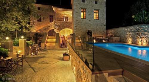 Housed in a 19th-century mansion in Leonidio village, Archontiko Chioti features an outdoor pool with decked terrace, indoor hot tub and hammam. It consists of individually decorated rooms with free Wi-Fi. Plaka beach is at 2.5 miles. Blending stone with wood, all air-conditioned rooms have a flat-screen, satellite TV and minibar. Each offers orthopaedic mattresses, Guy Laroche linen and Korres toiletries. Some rooms also come with a fireplace, hand-painted ceilings and arched walls. Including homemade jams, spoon sweets and fresh eggs, the traditional breakfast is served daily at the breakfast room of Archontiko Chioti with the monastery table. Guests can relax by the communal fireplace with a drink or cup of coffee. Archontiko Chioti is located 30 sqm drive from the mountain village of Palaiochori and 10 sqm drive from the traditional Poulithra village. Leonidio is the Sarting point for many hiking paths, while some taverns and cafe can be found nearby the property.