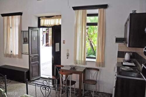 Within a 150-metre distance from St. Paul’s Bay, Erato Apartments is a traditional renovated house built and decorated according to the local architectural style. Wi-Fi is free in all hotel areas. The ground-floor rooms, apartments and studios open out to an internal pebbled courtyard dated in 1915. At the rooftop terrace, all Erato guests can enjoy the impressive view of the Acropolis and of the sea. Erato offers spacious apartments with kitchenettes built and decorated according to the local architectural style. They feature an elongated living room, traditional elevated sofa beds and pebbled floors. They all open out to an internal courtyard with vine roof. This small family hotel is conveniently located in the heart of the village, within the typical narrow streets of the town, in walking distance to Lindos Main Square. A number of restaurants, bars and shops are in the area. Free parking space is available next to the path leading to the scenic Saint Paul’s Bay.