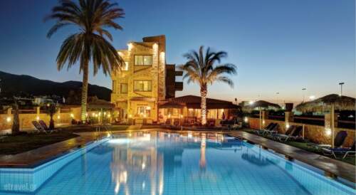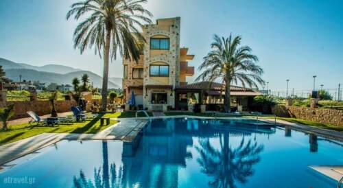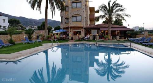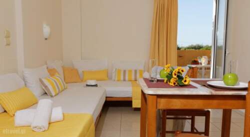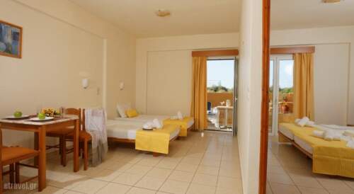 Danelis Studios & Apartments is located in the north coastline of Heraklion, only 15.5 miles away from Heraklion Airport. It offers a large pool with children’s section, a 5×5 soccer course and self-catering accommodation with satellite TVs.All apartments have balconies or verandas with a magnificent view to the surrounding area, a kitchen, bathroom, as well as air conditioning.The family run apartment complex allocates studios and two-room apartments which can accommodate from one to four persons. On the ground floor there is a cafeteria-bar, a tavern and a mini market.