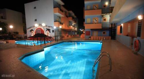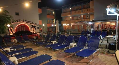 The Happy Days is a lively and vibrant accommodation, located in the old town of Ilia, within walking distance to the bars and clubs. It features studios with a balcony, a TV and a kitchenette with fridge. The Happy Days is more than rooms and facilities. The friendly and helpful personnel add to the fun and join in the events. Karaoke, Day Time Quizzes, fancy-dress nights, are among the theme nights that the residence organises for their guests he entertainment’s programme also includes games and a weekly BBQ night. The hotel’s an air conditioned restaurant, which hosts a big TV screen, 2 pools, a large sunbathing area a bar and seating area.