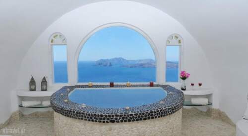 Summer Travel in Megalochori, Sandorini, Cyclades Islands in Caldera View Private Villa