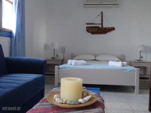 Situated on Katifora Hill in Milos, whitewashed Agnanti offers panoramic views to Adamas Bay and free 2-way transfer from the port and airport. Rooms feature free Wi-Fi and furnished verandas or patios overlooking the Aegean Sea and countryside. The Cycladic architecture complex with the vine roofs and olive trees, features rooms with air conditioning, TV and fridge. Some units have a kitchenette with a coffee maker and dining area. The helpful staff at the 24-hour front desk can arrange car and bicycle rental and provide guide books and maps. Guests of Agnanti Hotel are within a 20-minute walk from the beach. Adamas Port and Plaka are 1.5 km away. Free private parking is possible at the property.