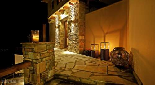 Lions Nine is an all-suites Pelion hotel, located in Mouresi. It offers spacious, sun-filled suites, all with verandas and a wonderful view of both the mountain and the Aegean Sea. Its lounge bar has a large seating area with fireplace and LCD TV.Each suite is distinctive in style. Elegant bedrooms with king-size beds, a seating room with fireplace and 42-inch LCD TV, and a fully equipped kitchen are all featured. The modern tiled bathrooms include care products, bathrobes and slippers.A freshly prepared breakfast consisting of local products, fruit, juices and pastries is served each morning and can be enjoyed in the privacy of your room. During the day, guests can sample ice creams, local desserts and snacks at the bar.Lions Nine is only 2.5 miles from Tsagarada. The property is 0.9 miles from Papa Nero Beach and 1.2 miles from Plaka Beach and Agios Ioannis Beach. The ski centre is 25 minutes by car.Hotel staff are on hand 24/7, and can assist guests with transfers and room service. Newspapers and magazines are provided upon request. Free outdoor parking is available on site.