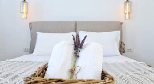 Surrounded by a blossomed garden, the Cycladic-style Aelia Mykonos located in Ornos village of Mykonos offers air-conditioned accommodation with free WiFi access and views over the Aegean sea. Opening to a balcony or terrace, the units of Aelia feature a modern, minimalistic Cycladic decor and are fitted with beamed ceilings. Each unit is equipped with a 32″ screen TV, a safe and a coffee machine, while some also include a kitchenette. The modern bathrooms come with built-in showers, hairdryer and free toiletries. The centre of Ornos Village, where restaurants and mini markets are featured, is 0.6 miles from Aelia Mykonos while the cosmopolitan Mykonos town is at a distance of 1.6 miles. Mykonos airport lies within 2.5 miles. Free on-site parking is possible.