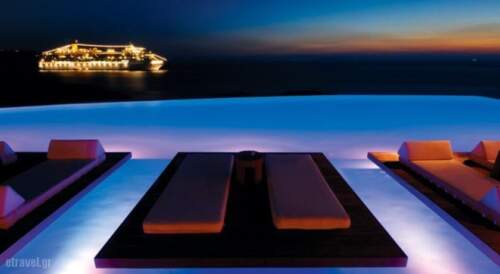 Within proximity of Chora in Mykonos, the awarded hotel Cavo Tagoo features an infinity pool with a 40 yards aquarium bar, and a fully equipped spa with indoor pool. All rooms enjoy sea views.The spacious and minimal guest rooms, suites and villas are individually decorated and each features a spa bath. In-room amenities include bathrobe and slippers, flat-screen TV and Simmons bed mattresses. Some units also feature a private pool.The Cavo Tagoo Golden Spa offers traditional body and face treatments, plus chromatotherapy, sauna, steam bath and salon services. Located adjacent to the spa, the fitness centre allows guests to keep in top shape during their stay.The Cavo Tagoo restaurant proposes contemporary Mediterranean cuisine created from fresh Greek produce. A buffet breakfast with delicious croissants and tarts is served in the morning.Offering uninterrupted views over Mykonos Town and Dilos Island, the Lounge & Pool Bar area of Cavo Tagoo boasts an infinity pool with colour-changing lighting, wooden decks that seem to float on water.The hotel’s 24-hour front desk can arrange for baby-sitting, laundry service and newspaper delivered to your door. Guest services include concierge service and doctor on call. Free on-site parking is available.