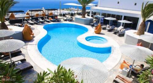 The gay hotel Elysium boasts tasteful accommodation and a swimming pool with views of the windmills and Mykonos Town. Guests can use the hotel’s gym and hot tub.Each guest room at the Elysium is fully equipped with air conditioning, minibar, safe and satellite TV. Free WiFi is available throughout the hotel.The Elysium has a lovely pool area with a spacious terrace. The hotel’s sunset-view bar hosts shows, dj sets and fashion parties on a regular basis.