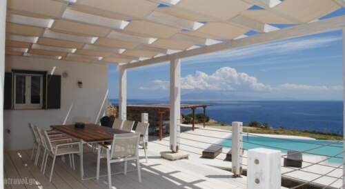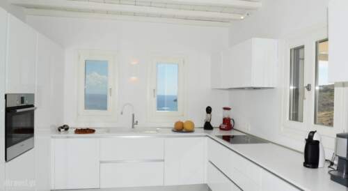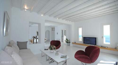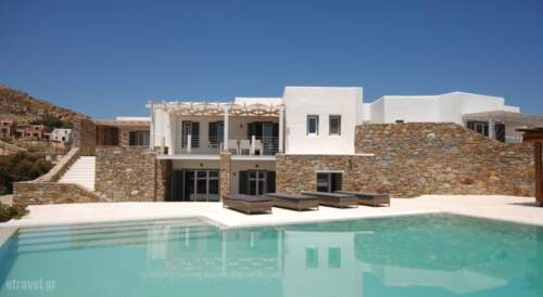 Gaia offers very spacious accommodation with a private pool and a large sun terrace with a furnished pergola overlooking the Aegean sea. It is located 0.9 miles away from Elia beach and 1.9 miles from the traditional village of Ano Mera. Built with respect to the Cycladic style, Gaia is minimally decorated featuring bright, ample spaces. Split in 2 levels, it consists of 5 separate bedrooms, 5 bathrooms, a fully equipped kitchen, a large living room and a dining area. Facilities include a flat-screen TV, dishwasher, washing machine, free toiletries and a hairdryer. Mykonos port is 6.2 miles away, while the cosmopolitan centre of Mykonos town is at 5 miles. Mykonos airport is 3.1 miles away.