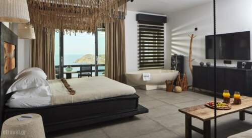 Offering an outdoor pool and a restaurant, the traditionally built Myconian Utopia Resort is located on a hill, just 100 meters from Elia beach. It features tastefully decorated accommodation with Aegean sea views and free WiFi. All air-conditioned rooms and villas of Myconian Utopia open to a furnished balcony and have a mini fridge and a flat-screen, satellite TV. Featuring a rain shower, private bathroom comes with a hairdryer. Some units are fitted with a hot tub or a private pool. Guests can relax on the sun loungers of the sun terrace by the pool or keep fit at the on-site fitness centre. Several massage treatments can be provided at the spa centre upon charge. This resort is 7.5 miles from Mykonos airport, while the scenic town of Mykonos also 7.5 miles away. Platys Gialos beach is at 6.2 miles and the beach of Psarrou is 8.7 miles away. Free private parking is possible on site.