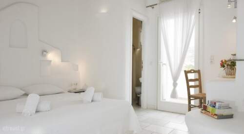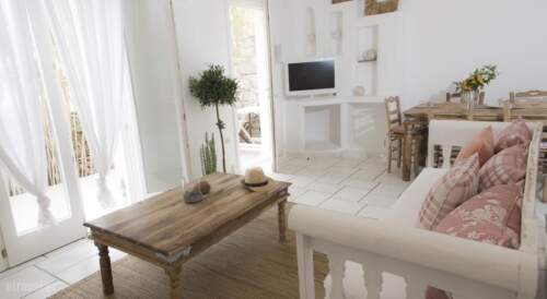 Only 100 meters from Ornos beach, the white washed Pearls of Mykonos atures traditionally decorated apartments with free Wi-Fi. Complimentary 2-way transfer from Mykonos airport and the port are provided. A bus stops in front of the property. Fitted with iron beds and beamed ceilings, all apartments are divided in 2 levels and open out to both a balcony and patio with garden or side views of the Aegean sea. Each has a fully equipped kitchen with a stove, fridge and dining area. A flat-screen TV, air conditioning and hairdryer are included. Pearls lies 1.6 miles from the cosmopolitan centre of Mykonos town with several dining and entertainment options. Both a basketball and soccer courts can be found at 10 meters. Mykonos airport is around 2.2 miles away. Free, private parking is possible on site.