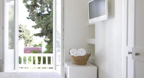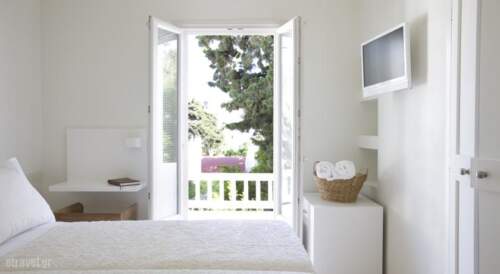 Terra Maria Hotel is located exactly in the centre of the town ‘Chora’, and offers tranquil environment and authentic Mykonian experience.Guests have the privilege of residing in a clean, friendly, calm environment, with lovely views over small white streets and public garden.Terra Maria features interiors that are simple, clear with minimalist design with all the facilities one may ask for from an affordable excellently located premise.This hotel is ideal for people who want to experience living the Mykonian lifestyle in full. Guests can use the internet, spend quiet days in the library with a book and, in the evening, enjoy the world famous night life of the island.