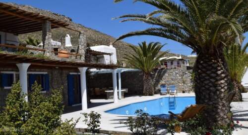 Located in Panormos village of Mykonos he stone-built Villa Irini features a private pool and a furnished sun terrace amidst its well-tended garden. Free WiFi access is provided throughout and free transfer from Mykonos airport is offered. Overlooking the garden, the mountain and the pool, the split-level villa is traditionally decorated with built-in sofas and beds, arches and beamed ceilings. It features a living room with fireplace, a dining area and a fully equipped kitchen. Facilities include a dishwasher, a washing machine and a flat-screen satellite TV with DVD player. Guests can relax at the sun loungers by the pool and enjoy the unobstructed views of the surrounding area. BBQ facilities a covered, outdoor dining area are also available on site for al fresco dining. Restaurants bars and mini markets can be found within 2.5 miles from Villa Irini, while Panormos beach is also 2.5 miles away. The cosmopolitan Mykonos town is at a distance of 3.7 miles and Mykonos airport is 4.3 miles away. Free on-site parking is possible.