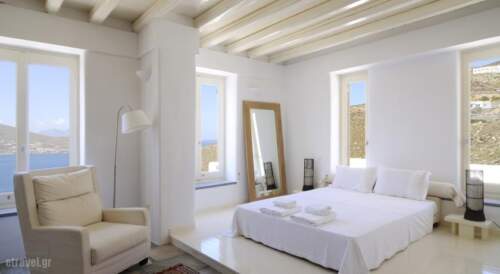 Cyclades Islands. Whats your idea of the perfect beach? Green-blue water and white sand? Beach bars and water sports? Framed by rocks for snorkelling and scuba diving?A secret Aegean cove accessible only on foot or by boat? No matter what your ideal is, youll find plenty of choices in the Cyclades. Known for the iconic blues and whites of their villages and their stunning beaches, the Cycladic islands equally deserve worldwide renown for what their crystalline waters and cove studded shoreline offer to sea lovers. Villa Joy specializes in a local treat with an aroma of the Aegean. Located at Ftelia Bay, Mykonos, 84600, Greece, Villa Joy will make you believe that it has come out of the foam of waves and looks like a white painting on a blue font. Villa Joy is ideal for a relaxed and serene holiday. Because of Villa Joy location visitors can easily explore impressively fertile valleys, lush green gorges, stunning seascapes and traditional villages perched high on mountain tops, where the inhabitants still wear their traditional dress and live off the fruits of the land! Villa Joy is the place where Greek tradition and hospitality come to a harmonious marriage.