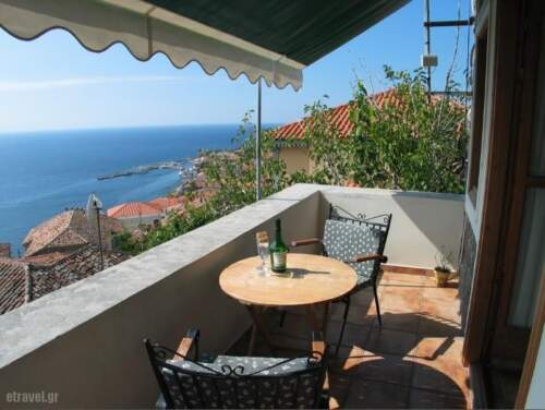 Captain’s View is a traditional, stone-built house located in Mithimna village, just 350 yards from the beach. It offers self-catering, air-conditioned accommodation opening to a furnished balcony with Aegean Sea views. Free Wi-Fi is available in all areas.Fitted with beamed ceilings, Captain’s View features warm-coloured wooden furnishings and wrought-iron beds. It includes a flat-screen TV with CD/DVD player in the living room and a well-equipped kitchen with dining area. A washing machine and a dishwasher are also provided.A mini market and bakery lie within 50 metres, while a restaurant is 150 yards away. Molyvos Castle is 350 yards away and Eftalou Beach can be reached in 2.5 miles. Mytilini Town is at a distance of 40.4 miles and Mytilini Airport lies in 43.5 miles. Free public parking is available nearby.