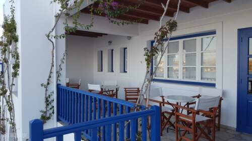 Bocamviglies by the Sea is a seaside property located in a quiet corner of Naoussa, at the Ag. Anargyri Bay, only 20 meters from the beach and 450 meters from the vivacious village center. The hotel embodies the authentic Cycladic architecture in blue and white shades, surrounded by blooming bocamviglias which are a pure sample of the Mediterranean flora. Bocamviglies offers 5 upper floor superior rooms, 3 superior middle floor rooms, 3 standard ground floor rooms and 1 apartment, all aimed to offer to each guest the serenity, relaxation and hospitality of the Greek summer. Decoration is inspired by the elegant Cycladic style combined with classical elements. It is the perfect spot for couples or friends. Bocamvilia belongs to the 4-key category of Naoussa Paros Hotels and is open from May to October.
