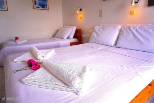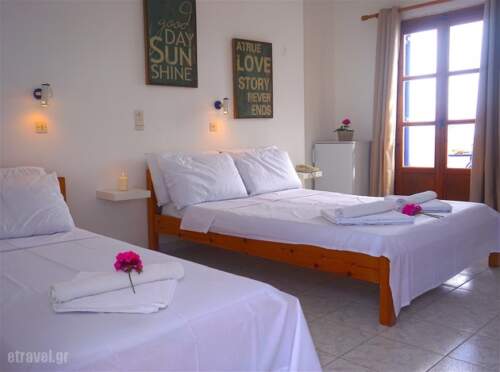The Villa Galini is located in Naoussa, Paros, on a hillside. The double and triple rooms are designed and decorated with Cycladic architecture, and are spacious and comfortable with their personal character and fan, while the balconies overlook the cosmopolitan center of Naoussa. All rooms have a private bathroom. In the garden, guests can enjoy the tranquility, while on the terrace one enjoys the view with sun loungers and parasols available. WiFi Internet is free, with additional facilities outside of the common areas and the rooms. From Villa Galini you can visit by boat, across the beaches of Naoussa: baptismal, water slides, monastery, Santa Maria and Laggeri that is close to Naoussa but you can also discover all the other beaches of Paros. Paros, besides its beaches, is famous for its picturesque villages, the Virgin Ekatontapyliani in Parikia, the entertainment and nightlife, especially in Naoussa, very close by. In Paros guests can travel by bus as there are very regular and frequent services to almost the entire island. -The old part of the cosmopolitan village: Naoussa, Parikia, White, Marpissas, -Ekatontapyliani Parikia, Museum of Parikia, Parikia archaic cemetery, Folklore Museums of Paros, Naoussa, White, Plain, and Punda.