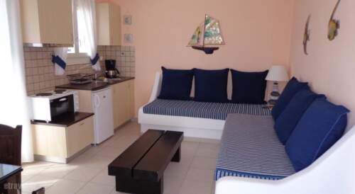 The newly built complex of Blue Harmony apartments is enjoying a beautiful location only 150 meters from the island’s famous sandy beach of Plaka in Naxosverlooking the Aegean sea. Blue Harmony apartments are individually styled and decorated. The soft tone colours and the carefully selected furniture and decorative objects, create an intimate atmosphere. Each features a large balcony with sea-view, double glazed windows and screens, Wi-Fi internet, 22-inch (55 cm) LCD TV screen, fully equipped kitchen with fridge, air conditioning and private bathroom with hair dryer. Guests can enjoy a homemade breakfast in their rooms. Blue Harmony is an ideal base from which you can explore the beautiful and picturesque villages of the island and enjoy its pristine beaches, combining swimming with water sports.