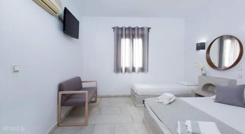 The studio’s traditional architecture and design coupled by a high degree of comfort, creates a unique atmosphere for you to relax and enjoy yourself in the beautiful facilities of Korali Palace. The studio features 15 spacious studios, tastefully furnished, all with private balcony. All our studios are decorated with pure Cycladic architecture and accommodate you with everything you need to make you feel just like home.