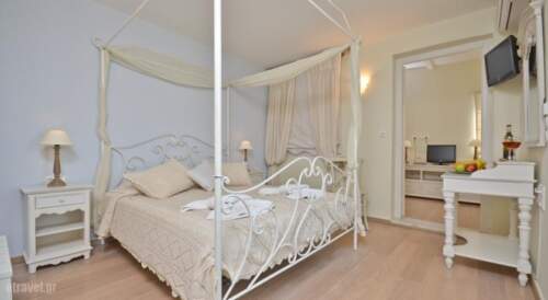 The family-run Hotel Kymata is only 30 yards from the beautiful sands of Saint George Beach and a 10-minute walk from Naxos Town’s lively seafront with its many tavernas, beach bars and shops. Free WiFi access is available throughout.Rooms at Kymata are decorated in a traditional Greek style and offer en suite facilities. The larger suites, ideal for families, have 2 separate rooms and include a sunny rooftop terrace with Aegean Sea view.More facilities include a communal lounge area and showers. Portara, the most famous landmark of Naxos, which dates back to the 6th century BC, is within 550 yards away. Free public parking is possible nearby.