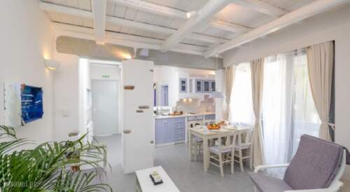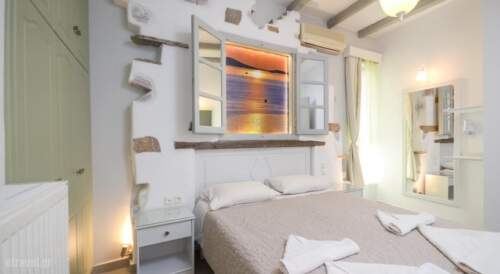 Santa Katerina Studios & Apartments offers a terrace with panoramic view. The traditional hotel features air-conditioned rooms with 2 furnished balconies and free WiFi. The fully organized sandy beach of Agios Georgios, where water sports facilities are available, is only 200 meters away. The spacious and uniquely styled Santa Katerina Studios & Apartments are tastefully decorated. Each has a living area with fireplace and a kitchenette or a fully equipped kitchen. Around the hotel you can find restaurants, super markets, car and scooter rentals, pharmacy and a spacious free of charge parking lot. The city center with its traditional narrow streets ideal for strolling is 450 meters away. This Naxos’ l is 1.2 miles from the airport and only 900 meters from the port. Free two-way transfer to the port or airport is provided upon prior arrangement.