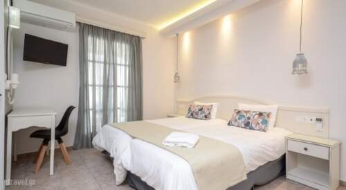 Cyclades Islands. The most famous island group in the Aegean Sea comprises some of the most beautiful islands in the world! Gorgeous sandy beaches, architecture in white and blue, traditional lifestyle, folk music, warm, hospitable people and barren landscapes with isolated chapels turn a trip to the Cyclades into a lifetime experience. Stay in Spiros and feel the magnificent sense of freedom and relaxation flooded with the strong Greek light and the deep blue of the Aegean Sea. Located at Agios Georgios, Naxos Island , Cyclades, 84300, Greece, Spiros is the perfect place to discover and enjoy the dazzling light and the crystal blue waters, in the quest of the paradise on earth. The Cyclades Islands, because of their proximity to Eleftherios Venizelos Airport and Athens, is an easily accessible beauty with a scenery variety: steep mountains, small fields, olive groves, vineyards, valleys, picturesque coves and off-the-beaten-track beaches. Spiros offers you the opportunity to discover and explore unrivalled natural loveliness sceneries, beaches of crystal clear waters, exceptional Byzantine footpaths connecting traditional villages, archeological sites and breathtaking landscapes. Located at Agios Georgios, Naxos Island , Cyclades, 84300, Greece, Spiros is one of the most beloved holiday accommodation choices - ideal for a relaxed holiday surrounded by old-style white settlements, quiet harbours, golden beaches, bare hills and gorgeous sceneries. Visit us and discover more! Our website: http://www.hotelspiros.com/ | Our Location: Agios Georgios, Naxos Island , Cyclades, 84300, Greece