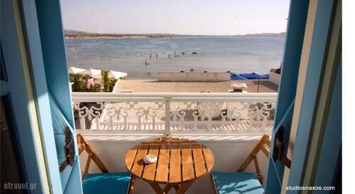Cyclades Islands. Whats your idea of the perfect beach? Green-blue water and white sand? Beach bars and water sports? Framed by rocks for snorkelling and scuba diving?A secret Aegean cove accessible only on foot or by boat? No matter what your ideal is, youll find plenty of choices in the Cyclades. Known for the iconic blues and whites of their villages and their stunning beaches, the Cycladic islands equally deserve worldwide renown for what their crystalline waters and cove studded shoreline offer to sea lovers. Studios Naxos specializes in a local treat with an aroma of the Aegean. Located at Agios Georgios beach, Cyclades, 84300, Greece, Studios Naxos will make you believe that it has come out of the foam of waves and looks like a white painting on a blue font. Studios Naxos is ideal for a relaxed and serene holiday. Because of Studios Naxos location visitors can easily explore impressively fertile valleys, lush green gorges, stunning seascapes and traditional villages perched high on mountain tops, where the inhabitants still wear their traditional dress and live off the fruits of the land! Studios Naxos is the place where Greek tradition and hospitality come to a harmonious marriage.
