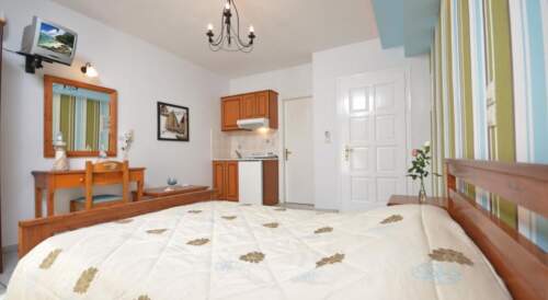 Set in lovely gardens, the Summer Memories studios offer sea-view accommodation coupled with free 2-way transfer to the port/airport on request. The clean and spacious studios at Summer Memories complex are fully equipped with air conditioning, kitchen with fridge, TV and bathroom with hairdryer. The complex is situated in the quiet area of Flisvos, close to the well-known St. George beach and its water sports facilities. Private parking, daily maid service and baby cots are also available and there is no extra charge. The property’s provides free Wi-Fi in the lobby and fresh products from the ownersfarm when available.