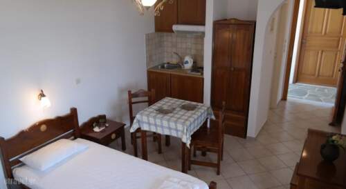 Just 450 yards from Mikri Vigla Beach, Studios G. Salteris offer a well-tended garden with grassy areas and trees. They feature self-catering accommodation with views over the Aegean Sea. Free WiFi access is available in public areas.Opening to a furnished balcony, all air-conditioned studios and 1-bedroom apartments of Salteris come with a TV. Each has a kitchenette with cooking hobs and dining area.A restaurant, a cafe bar and a supermarket for the general supplies can be found 450 yards away. Naxos National Airport is 3.1 miles away and Chora, the main town of the island along with the port, is at a distance of 3.7 miles.