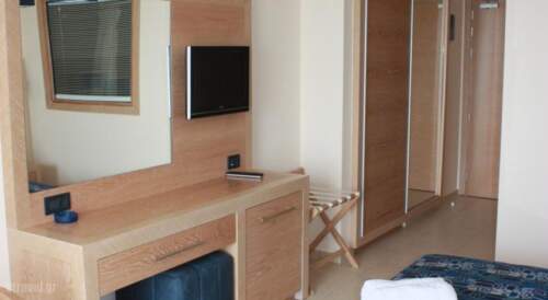 Set ideally on the beachfront, this 4-star hotel offers ergonomically designed rooms with free Wi-Fi and underground private parking.Aegean Blue soundproof rooms are fitted with high-quality mattresses and satellite TV. Each has a furnished balcony with views to the sea and mount Olympus. The modern bathrooms include a hairdryer and bathroom amenities.The sandy beach in front of the hotel offers sun beds and umbrellas, while the on-site lifeguard ensures carefree holidays.The Aegean Blue attentive staff are on hand 24/7 and offer room service.