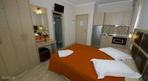 Set amid a garden with olive trees, Gaia Studios & Apartments is just 250 yards from Nea Plagia Beach of Chalkidiki. It offers tastefully decorated accommodation with self-catering facilities. Free WiFi is available in all areas.Featuring a balcony with garden views, all air-conditioned studios and apartments of Gaia come with a flat-screen, satellite TV. Each has a kitchenette with fridge, cooking hobs, sandwich maker and coffee machine. Free toiletries and a hairdryer are included.Guests may relax at the sun terrace of the property. a children’s playground is offered for the younger guests entertainment.Several shops, a restaurant and a mini market for the general supplies can be found at the centre of Nea Plagia Village, 250 yards away. The town of Nea Moudania is about 5 miles away. Macedonia International Airport is at a distance of approximately 27.3 miles.